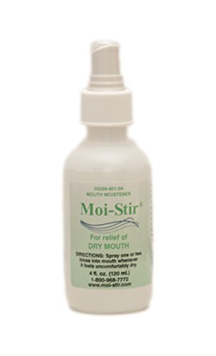 -. Feature : Replenishes moisture to the oral tissues. Refreshes and Relieves dry mouth (xerostomia) / Manufactured by an FDA registered cGMP facility since 1966, under a validated control process, to ensure the high quality and uniformity of each batch / High Quality Standard: Monitor and test multiple times until its expiration date / Moi-Stir is an aqueous solution of Sodium Carboxymethylcellulose and the predominant electrolytes present in normal human saliva / 36 months expiration date. Made in USA
