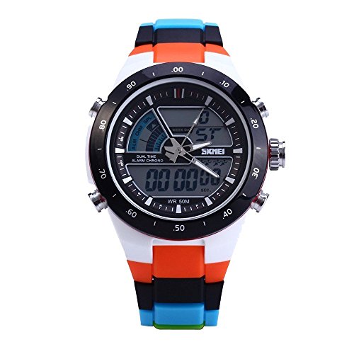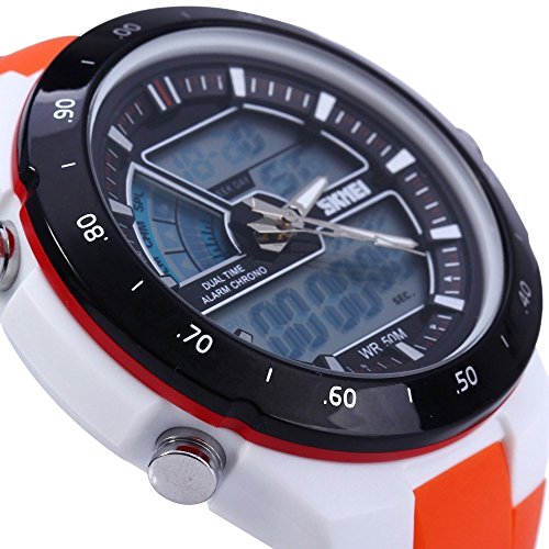 Ligangam 【ligangam】 맨즈 레이디스 다기능 손목시계 스포츠 타입 스포츠 워치 듀얼 표시 디지털+아날로그 방수해 방지 충격 알람등 기능 날짜 백 라이트 블랙 밴드 (glee