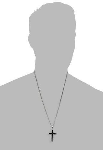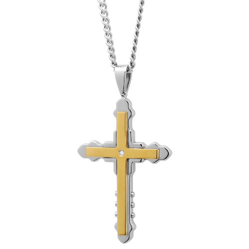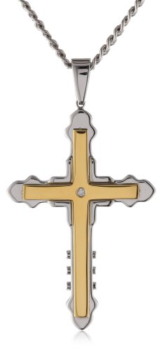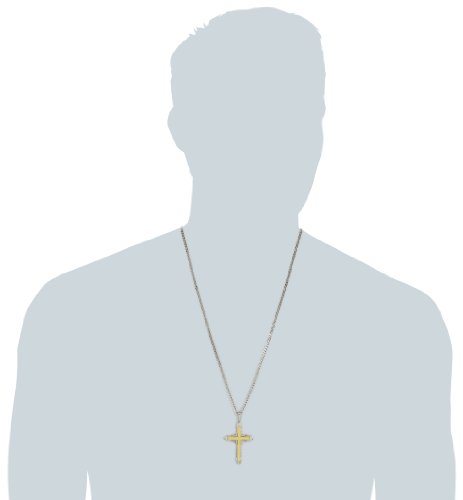 -. Title : Men's 0.02 Ctw Two-Tone Stainless Steel Key Cross Pendant Necklace, 24"