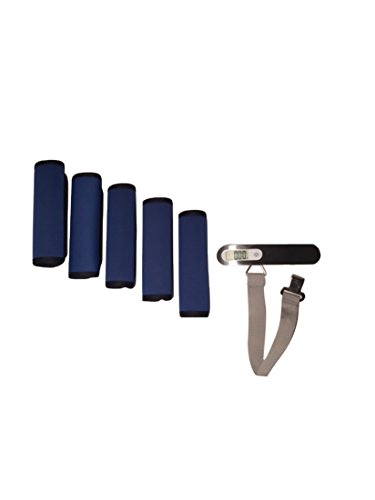 Product Description This comfort neoprene luggage handle wrap is the perfect accessory to cushion the handles of a heavy bag. These attractive neoprene handles allow you identify your bag with ease. Not only do these handle wraps provide comfort, but they are sturdy, fashionable, and will fit any bag you choose with ease. The digital luggage weight scale is designed to save you stress and money when traveling by airline. Just hook your baggage onto the durable steel hook and the scale will display results within seconds. Measure all of you bags with this scale that will easily hold the weight of any luggage bag. You will never pay unexpected overweight luggage or baggage fees again! 0