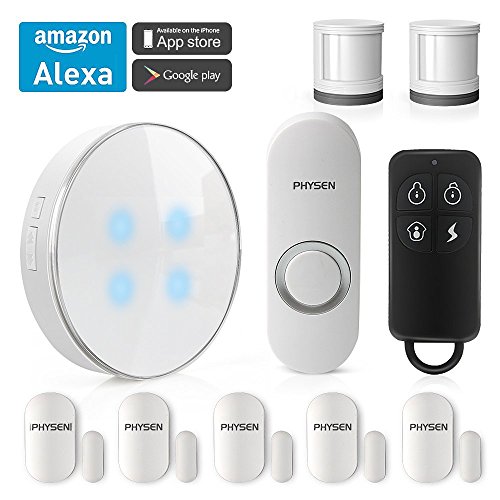 -. Title : PHYSEN Wireless Smart Home Security System kit with 1 Smart WiFi Hub,1 Doorbell Button,2 Motion Sensors,5 Contact Sensors and 1 Remote Control,Control by Smartphone APP,Work with Alexa