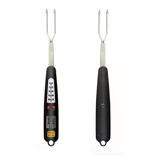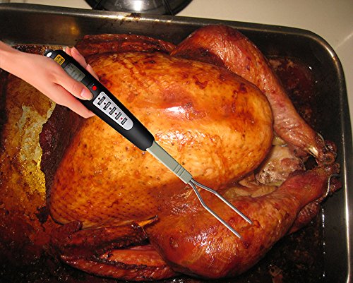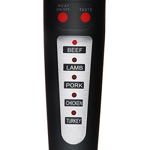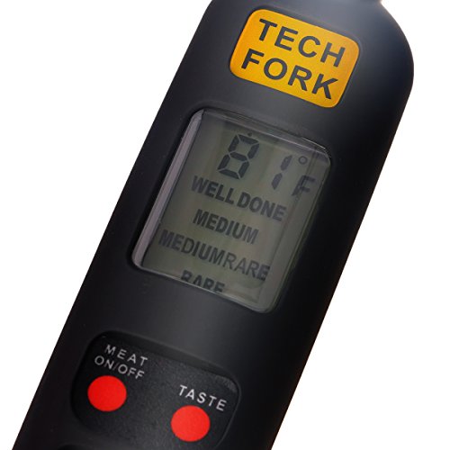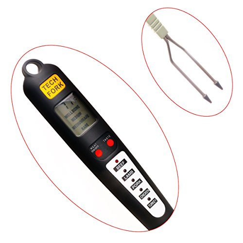 - GREAT DESIGN :This best digital fork thermometer comes preprogrammed for meat (beef, lamb, pork, chicken, turkey) and 4 doneness levels (rare, medium rare, medium and well done) - So cooking perfect food just became easily. Just select your meat and desired tenderness at the push of a button and impress friends and family with your mastery of grill.