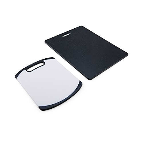- This set includes (1) 8-inch by 10-inch non-slip cutting board and (1) 11-inch by 14-inch utility cutting board
