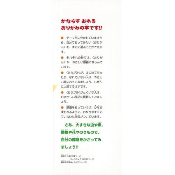 【商品説明】 定価(税込み):2,160円 値引き:10% OFF ばった、かえる、こい、かめ、とんぼ、たこなど。順番を追っていけば必ず折れる。巻末には、おりがみの基本となる折り方を解説。 バーゲンブック 新品 特価 格安 ハンド クラフト 折り紙 塗り絵 おりがみ |