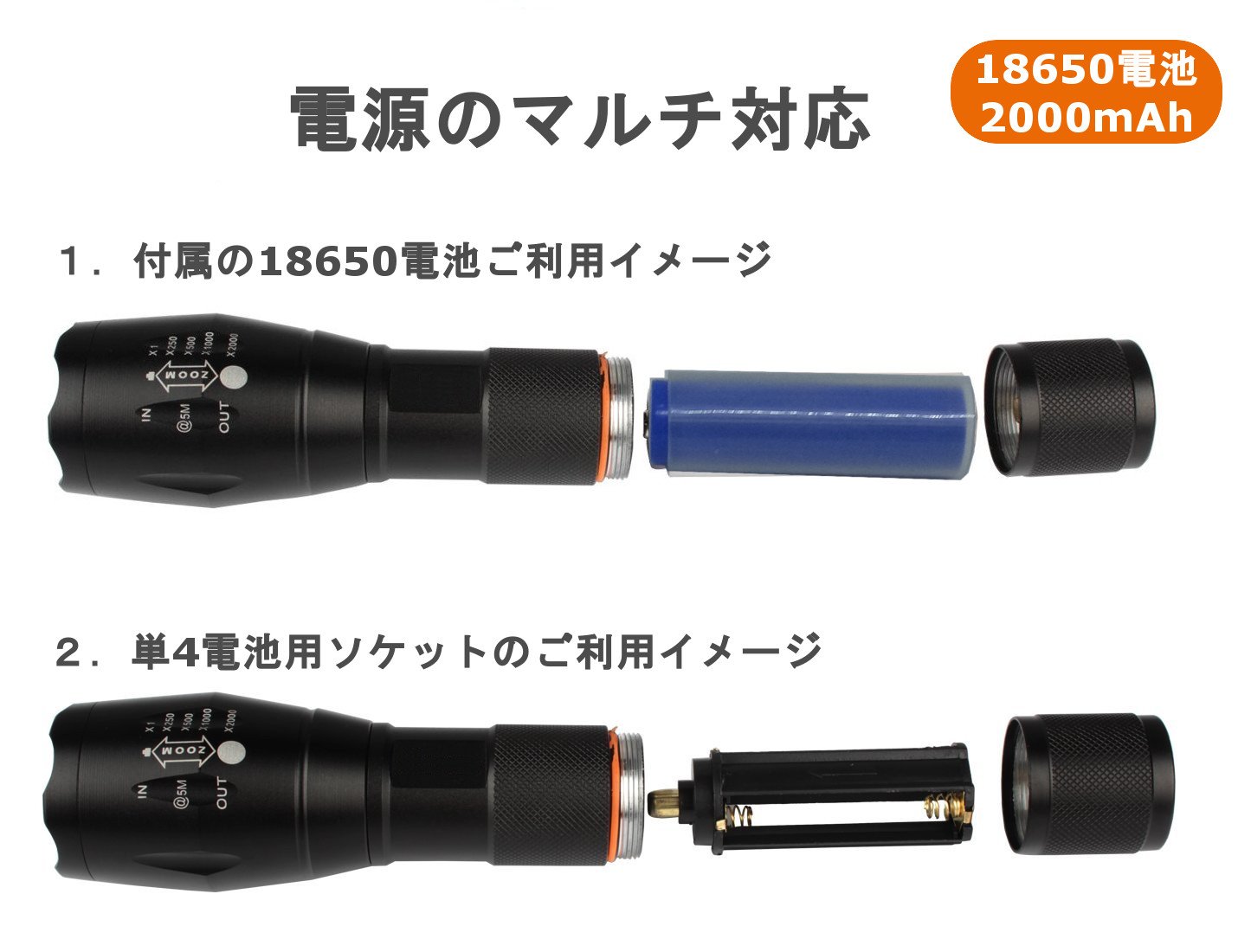 · Power supply: 18650 battery / AAA battery (Batteries not included)
