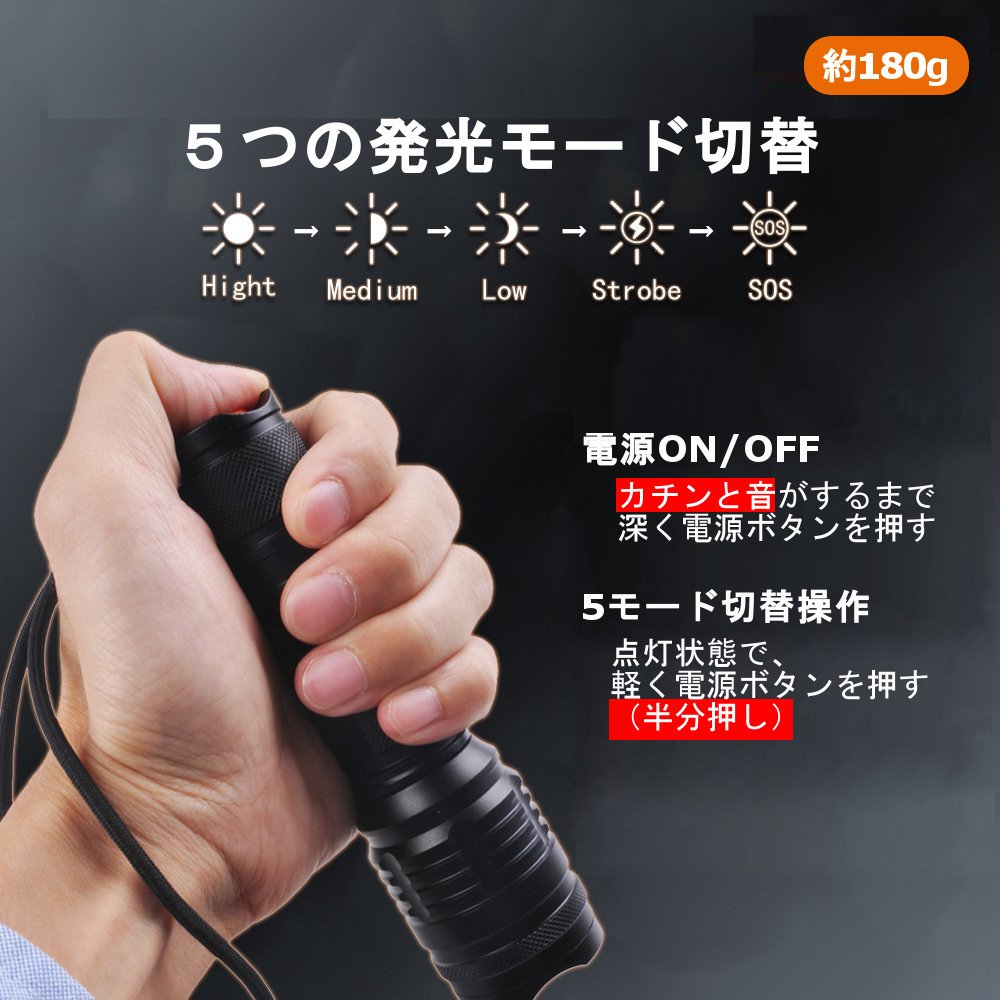 · Lighting time: 2 to 4 hours for new batteries (high mode: about 2 hours, low mode: about 4 hours)