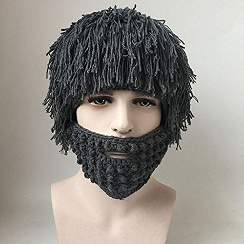 Creative Winter Hat Beard Hat, Knitting Wool Hair Beanie Hat Knit Hat Winter Warm Hat Windproof Funny for Men & Women (Grey)