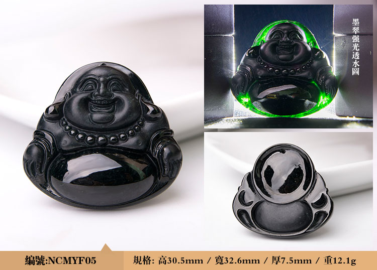 Height 30.5mm, Width 32.6mm,Thick 7.5mm, Weight 12.1g天然翡翠玉佛吊坠女款,墨翠玉佛,料子乌黑发亮,透光翠绿!雕工精致!
