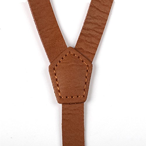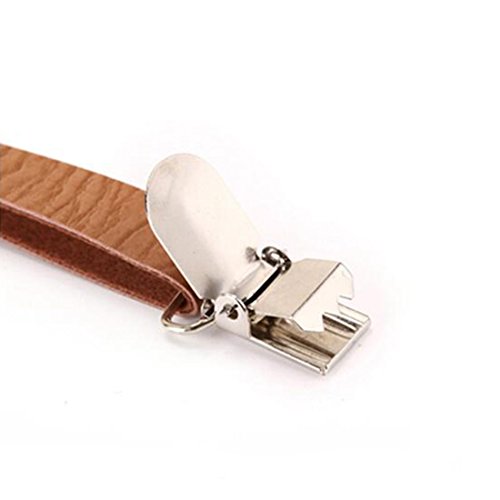 Description: Package Contain : 1 Piece x Suspender Product Material : Faux leather ,Metal clip Product Color: Brown Product Pattern Type:Solid Product Size: Width:1.3cm/0.51inch;No stretching Length:65-120cm/25.59-47.27 inch;Fit for Height:Under 130-180cm/51.18-70.87 inch Product Clips:3 Clips Product Shape : Y