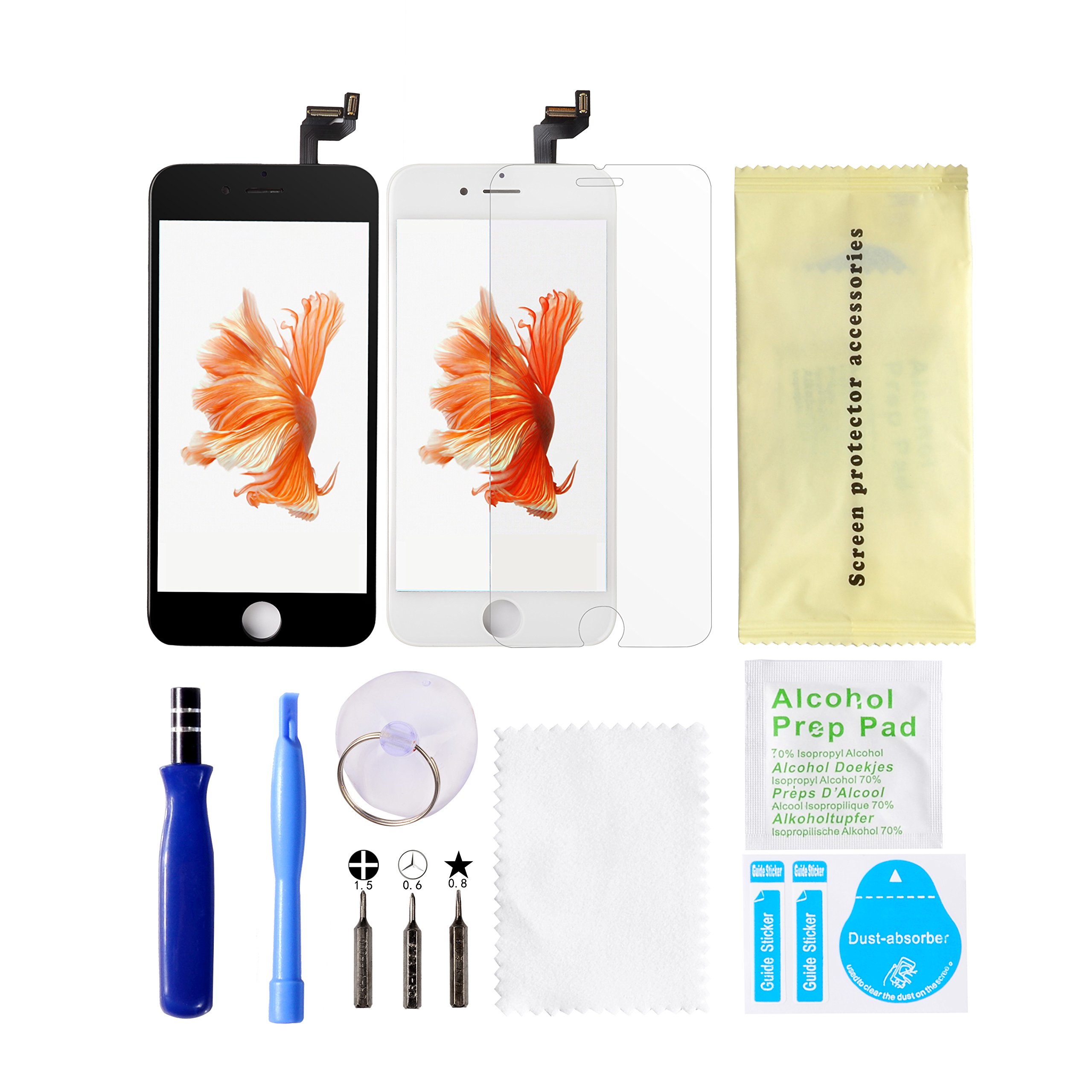 Quantity 1: iPhone 6S 4.7 inches replacement front panel (front glass digitizer) touch panel liquid crystal panel set repair tool included