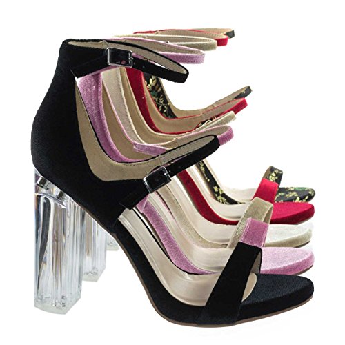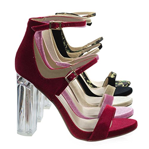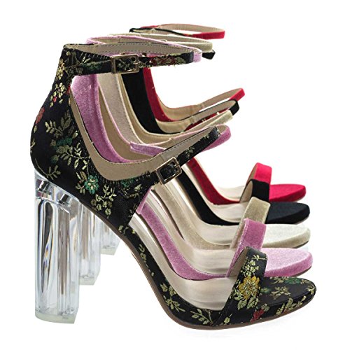 Binding : Apparel Product Description About This Shoes :Adore your feet with these classy dress sandals featuring clear / transparent / Perspex chunky heel, triple strap, two of the straps are adjustable, closed heel counter and comes in solid velvet and sakura flower Brand - Delicious Colors Available: Black Sakura Embroidered Print, Red Velvet, Black Velvet, Beige Velvet, Dark Pink Velvet Occasion: Formal Shoe Type: Heels - Open Toe Shoe Style: Ankle Strap Inner Lining: synthetic Heel Height In Inches - 4 Heel Style - Block Toe Style - open-toe Platform Height In Inches - 0.25 Shaft Height In Inches - n/a Circumference Opening - n/a Strap Type - ankle-strap Sole - manmade All Man Made Material unless otherwise stated. Computer/Phone/Table monitors might show color differently because of its quality or calibration, we suggest you look at the photo in at least 3 monitors if you need exact color match of your shoes. 0