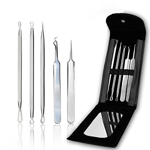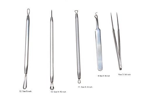 5 Pieces Tools: 3 Double-Ended Acne Tools,2 Unique Tweezers Handles Ingrown Hairs And Poping Easily,Perfectly Aligned For Precise Plucking