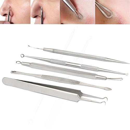 Wqueen 5Pcs Silver Stainless Steel Remover Pimple Acne Needles Extractor Tool Kit