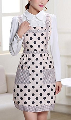 Fashion and Practical Apron (suitable for kitchen,cafe,working shop) with unique pattern and colour (Adult, Blak and white(Polka dot pattern))