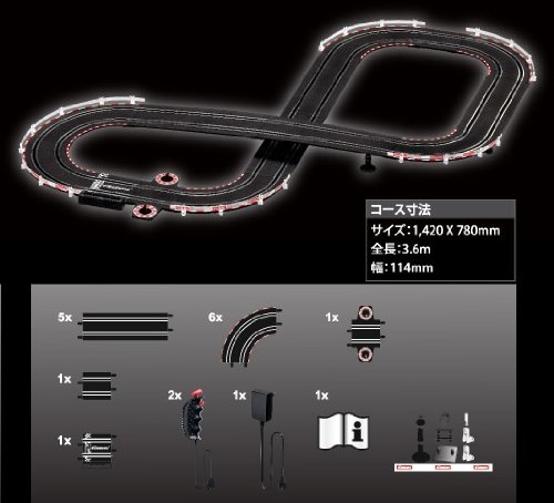 50年の歴史を持つ「Carrera」の信頼のスロットカーが参上!! カレラ2台がセットになっています!! ヨーロッパの安全基準LGA認証。小さいお子さんとの2世代、3世代のホームレースも楽しめます。ライトに遊ぶならカレラで決まり!片付けも簡単な、コンパクトなスペースで遊べるサーキットです!ターボボタン駆使してライバルとの差を付けろ!50周までカウント可能なラップカウンター付き!ビギナーなどに易しい、交換用ブラシーパーツセット付!このセットに夢も遊びも盛りだくさん!!拡張アイテム他、多数車種も続々登場予定!あなただけのオリジナルサーキットも作成可能!!ビギナーにも安心な交換用ブラシパーツセット付き!長く遊べる完全フルセットです!! ■コース全長:約3.6m ■コースサイズ:1420×780mm ■対象年齢:6才以上Feature