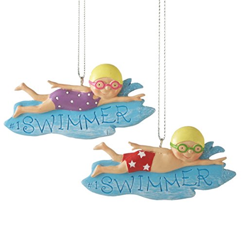 Midwest CBK Seasons #1 Swimmer Boy or Girl Wafer Christmas Ornament (blu, small)
