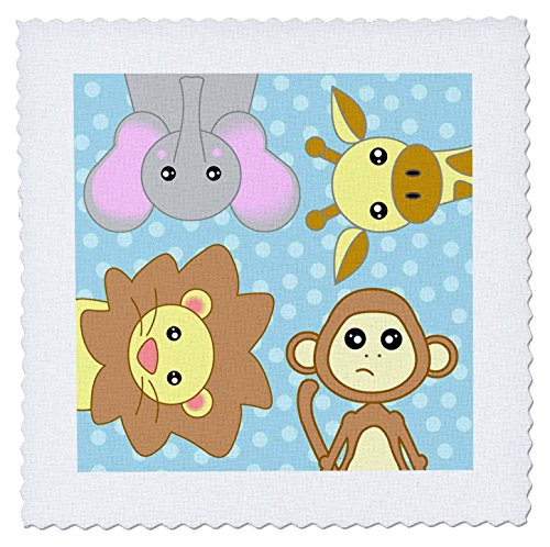 3dRose Curious Baby Animals Lion Monkey Giraffe Elephant on Blue Background - Quilt Square, 10 by 10-Inch (qs_15434_1)