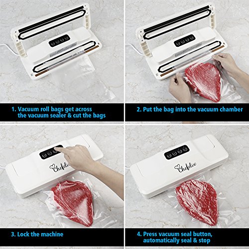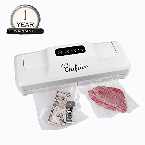 Chefelix 2-in-1 Automatic V1 Vacuum Sealer with Tube and 10 Vacuum Bags, Easy One-Touch, Seal Indicator Lights & Quiet