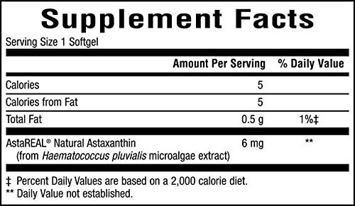-. Feature : Astaxanthin is a natural occurring pigment found in microalgae often referred to as the "king of carotenoids" and has many health benefits.* / Astaxanthin is a potent fat-soluble antioxidant from red marine microalgae that protects cell membranes from free radical damage* / Astaxanthin has been studied in a variety of inflammatory reactions and it supports healthy immune function, joint, brain, vision and cardiovascular health.* It supports healthy joint cartilage thickness by lowering levels of inflammatory cytokines which attack cartilage in joints* / TruNature Astaxanthin contains AstaREAL, a highly potent, natural astaxanthin known for its purity and strength / Please read all label information on delivery