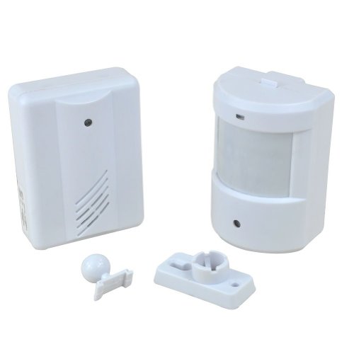 -. Binding : Tools & Home Improvement -. Brand : Worldoor -. EAN : 0705586457957 -. Feature : Infrared sensor detects motion and sends a signal to the receiver / Wireless installation, just place the sensor at the entrance / Receiver requires 2x AA batteries, transmitter requires 1x 9V battery (batteries not included) / Send audible chime sound, alerting you that somebody is approaching / Material: Plastic. Melody: for Alice -. Label : Worldoor -. Manufacturer : Worldoor -. PackageQuantity : 1 -. ProductGroup : Home Improvement -. ProductTypeName : HOME_LIGHTING_ACCESSORY -. Publisher : Worldoor -. Size : 5.3 x 3.8 x 3.4 inches -. Studio : Worldoor -. Title : Worldoor® Door Bell Alarm Chime Doorbell Wireless Infrared Monitor Sensor Detector Entry Bell , Wireless Door Bell Welcome Alarm Chime Motion Sensor Detector -. UPC : 705586457957