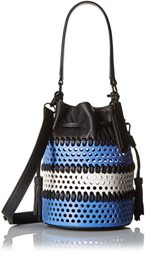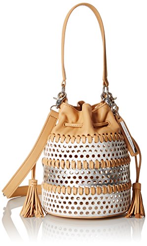 LOEFFLER RANDALL Mini Industry Perforated Woven Leather Bucket Cross Body, White/Silver/Natural, One Size