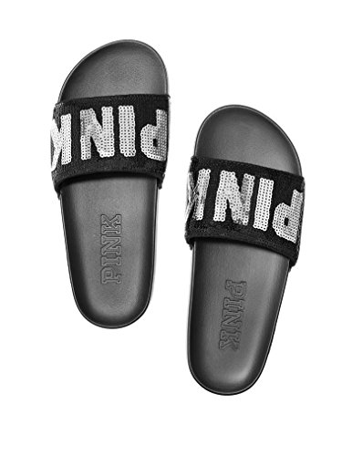 (VS PINK)/Women's/Sandals/DIRECT FROM USA/Victoria's Secret PINK Black Silver Bling Sequin Slides - Medium Size 7/8