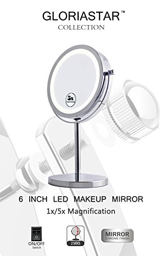 Gloriastar Lighted Makeup Mirror -Double Side LED Vanity Mirror,1x/5x Magnification,6 Inch,Chrome