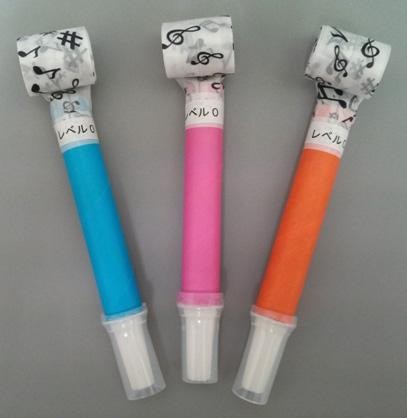 | 腹式呼吸の訓練や口周筋・言語障害のリハビリに!!昔遊んだ懐かしい玩具が口腔機能の向上に今、注目されています!!レベル0はティッシュペーパーを1枚吹いて揺らす程度の呼気圧です。(個人差がありますので、目安としてください。) |
