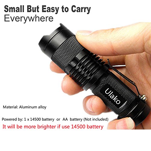 Aluminum alloy casing and skid-proof design, feel more comfortable. Power by 1 x 14500 Battery or AA Battery (not included).It will be more brighter if use 14500 battery.