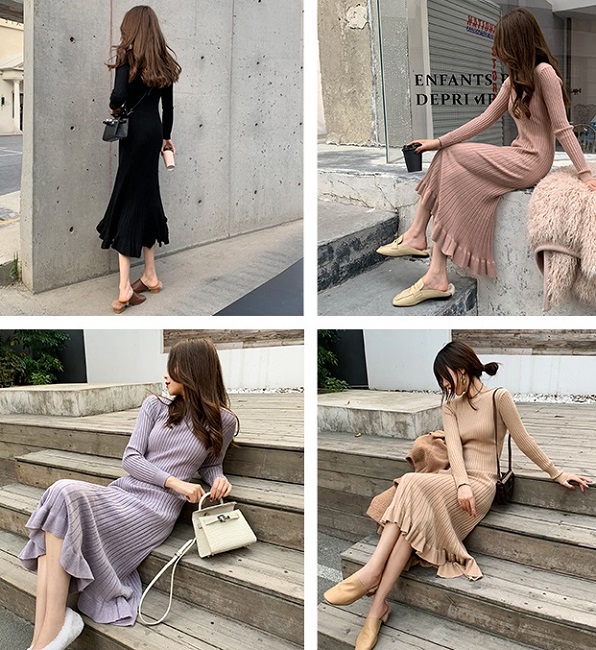 タイトフィットするトップから美しく広がるフレアワンピース★