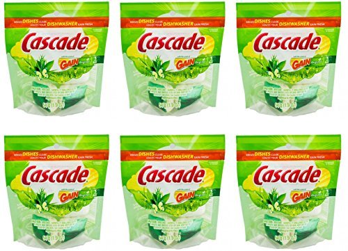 -. Title : Cascade Actionpacs Dishwasher Detergent, Gain Scent, 6 Packs of 3 Count, 18 Total Count