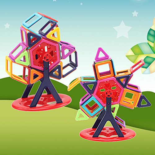 -. Feature : Great set: Include 24pcs magnetism square shape blocks, 12pcs magnetism triangle shape blocks, 2pcs magnetism hexagon shape blocks, 2 groups magnetism wheel shape toys, 1 magnetism rectangular shape block, 1 set ferris wheel shape toy(Including 8pcs accesories), 26pcs letter card blocks and 16pcs numeric card blocks without magnetism and self-adhesive for your kid's playing. / Useful: These toys unique shape, can be freedom combined. Develop children's fine motor development, cognitive development of color, teamwork ability, artistic cognitive, sensory, cognitive ability, practical ability and imagination. / Advantage: Play and fun. Fits for all age kids, a best way for them to explore the world of geometry and architecture. Kids can follow the idea booklet or create their own design! / Durable: Made of eco-friendly ABS plastic, nontoxic and lightweight, smooth edge of each piece will never hurt baby's little hands. / Convenient: Compact with a storage box, which makes it easy to put all the pieces back after playing, handy to carry and store. Best educational stacking blocks kits for your lovely boys and girls.