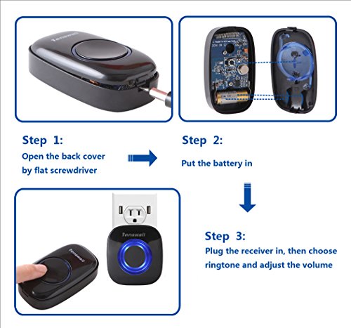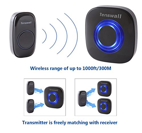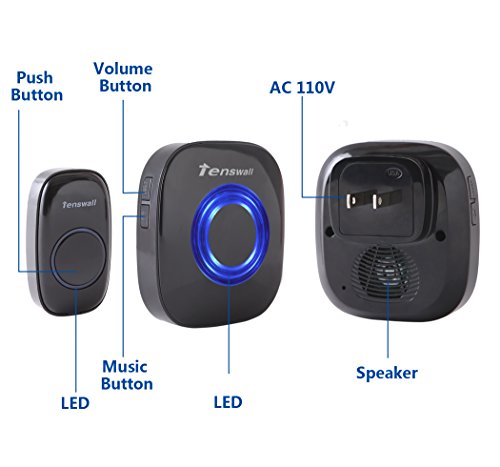 - Title : [Best Wireless Doorbell ] Tenswall Portable Door Bell Kit with 52 Melodies Operating at 1000ft Range ,1 Remote Push Button Transmitter and 1 Plug-in Receiver Door Chime Black