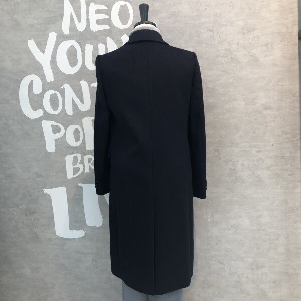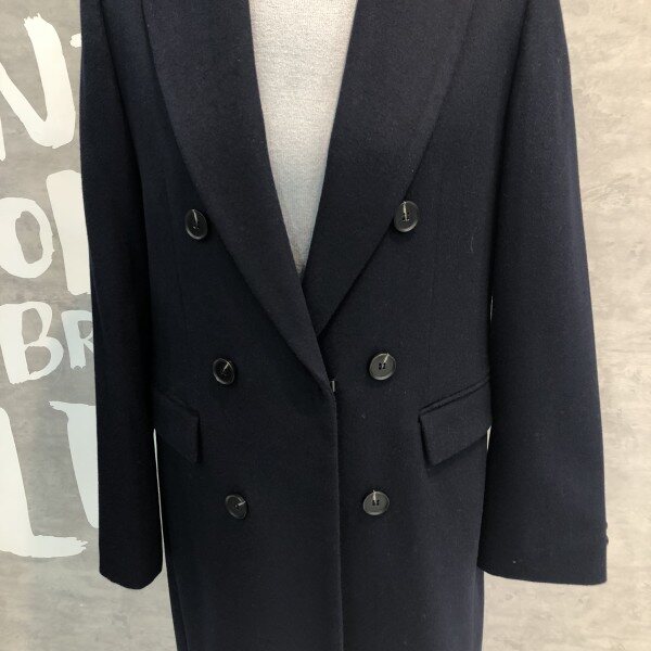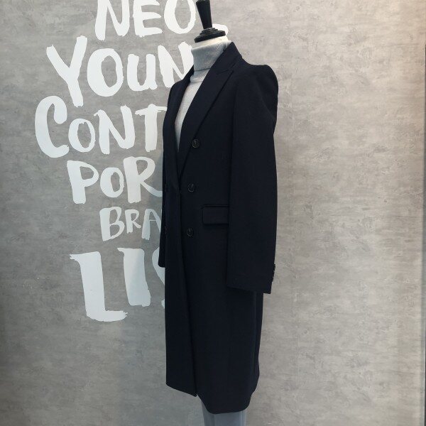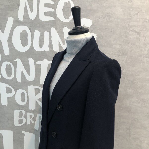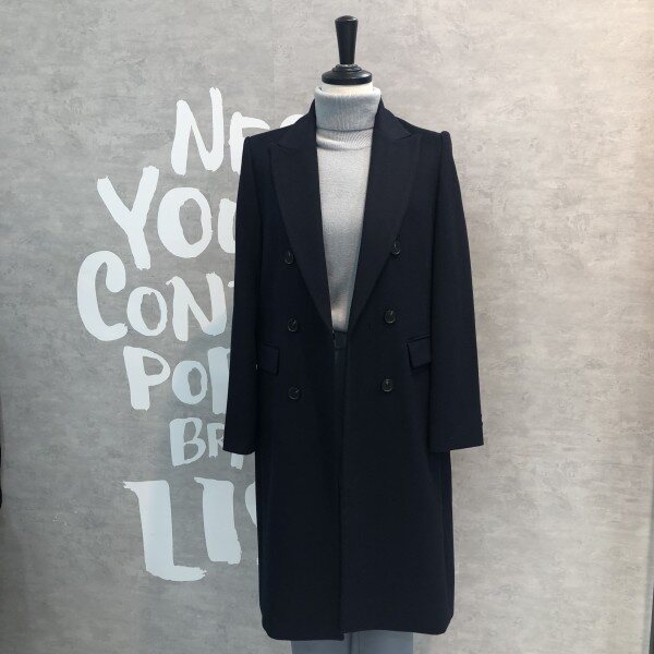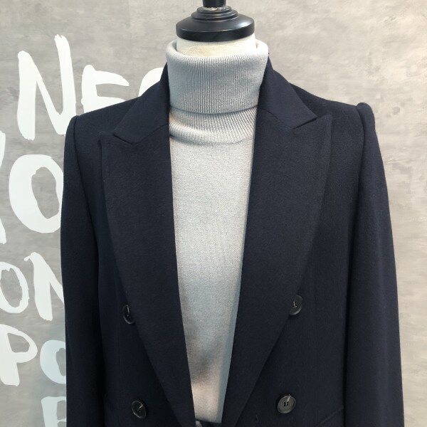 롱기장에 피크트 라펠이 시크하며 더블버튼 디자인이 클래식한 울 블렌드 재킷입니다