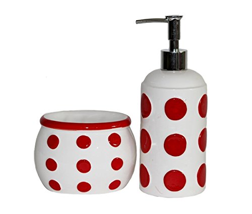 Tuscany 3D Red Dots, Hand Painted Ceramic Brillo Sponge Holder and Soap Dispenser, 82288/89 by ACK