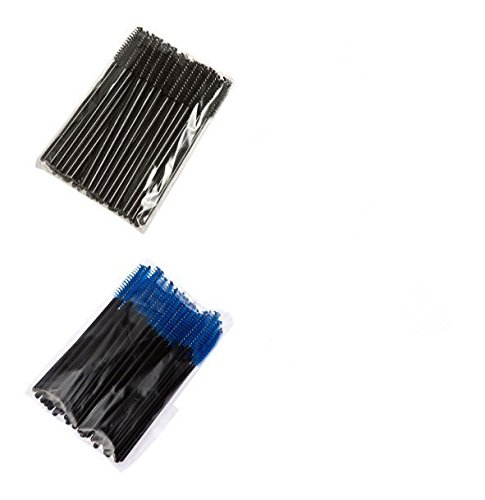 ALINCAS (TM) 50pcs Blue & 50pcs Black Disposable Eyelash Mascara Applicator Wand Brush