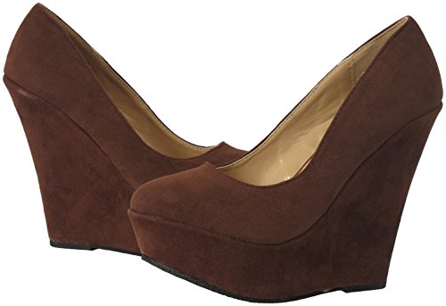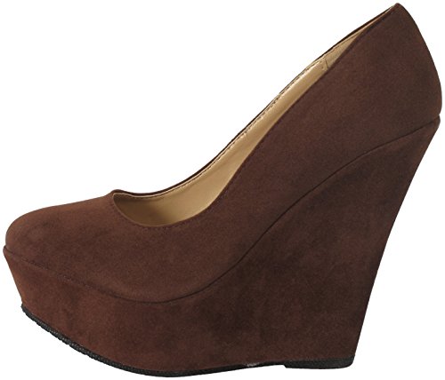 -. Feature : synthetic suede / Heel Height~5.25 / Platform Height~1.5 / Shaft Height~ / high-heels / round-toe / does-not-contain-animal-products