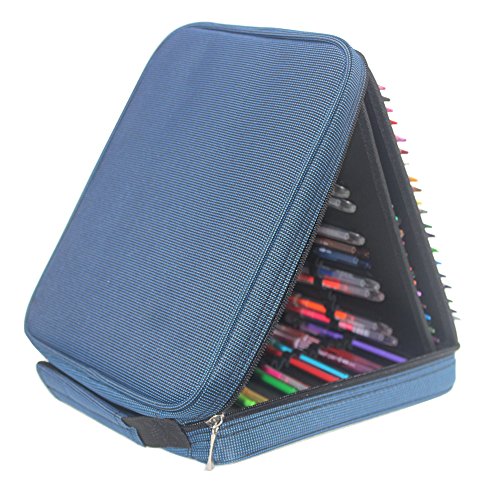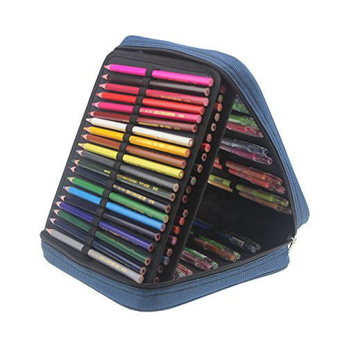 Pshine 120 Slots Large Capacity Handy Deluxe Colored Pencil holder- Pencil Case-Pencil bag-Pencil pouch-Pencil wrap with Zipper(Pencils/Pen Not Included)-sapphire blue