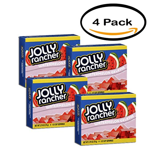 -. Binding : Misc. -. Brand : JEL SERT -. EAN : 0607963707467 -. Feature : 4 half-cup servings / Low cholesterol / Low fat -. IsAdultProduct : 0 -. Label : Jel Sert -. LegalDisclaimer : Actual product packaging and materials may contain more and different information than what is shown on our website. We recommend that you do not rely solely on the information presented and that you always read labels, warnings, and directions before using or consuming a product. -. Manufacturer : Jel Sert -. PackageQuantity : 4 -. ProductGroup : Grocery -. ProductTypeName : GROCERY -. Publisher : Jel Sert -. Studio : Jel Sert -. Title : PACK OF 4 - Jolly Rancher Watermelon Gelatin Mix, 2.79 oz -. UPC : 607963707467