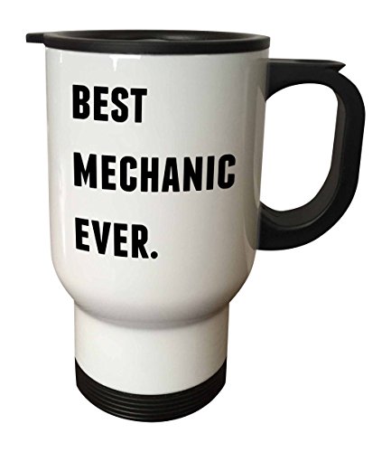 3dRose tm_213381_1 Best Mechanic Ever, Black Letters on a White Background Travel Mug, 14 oz, White