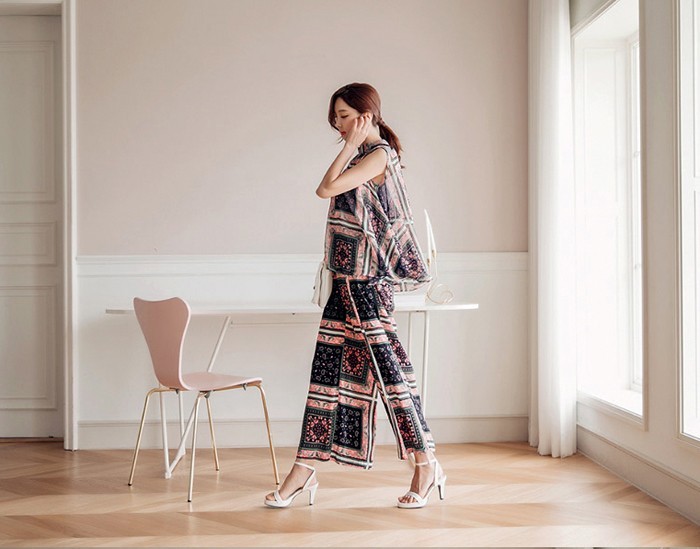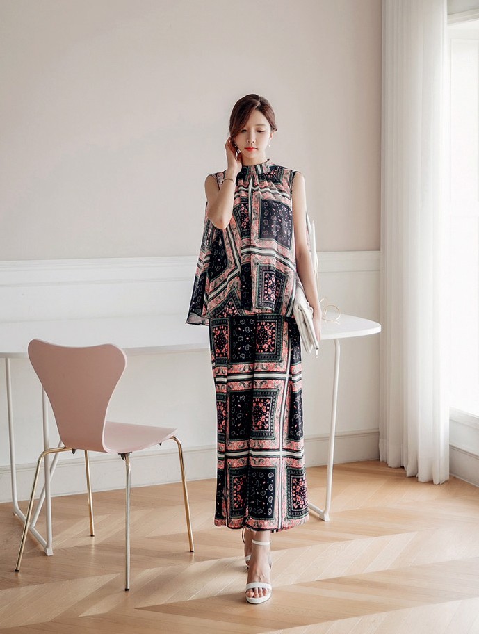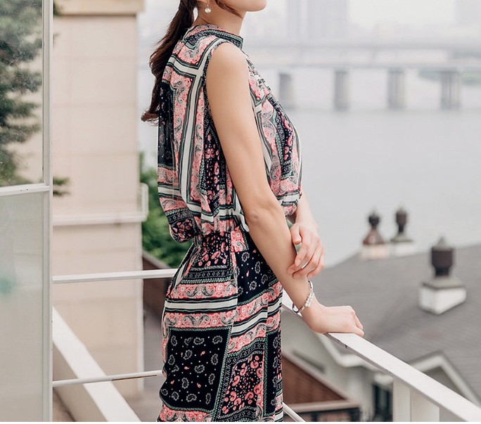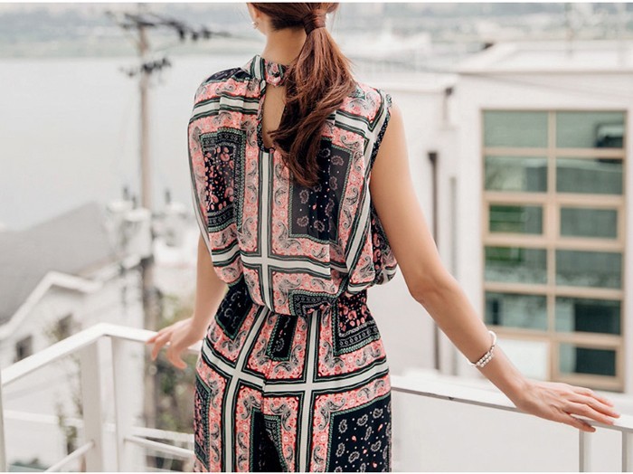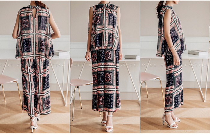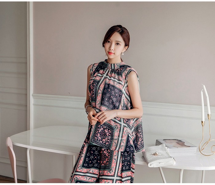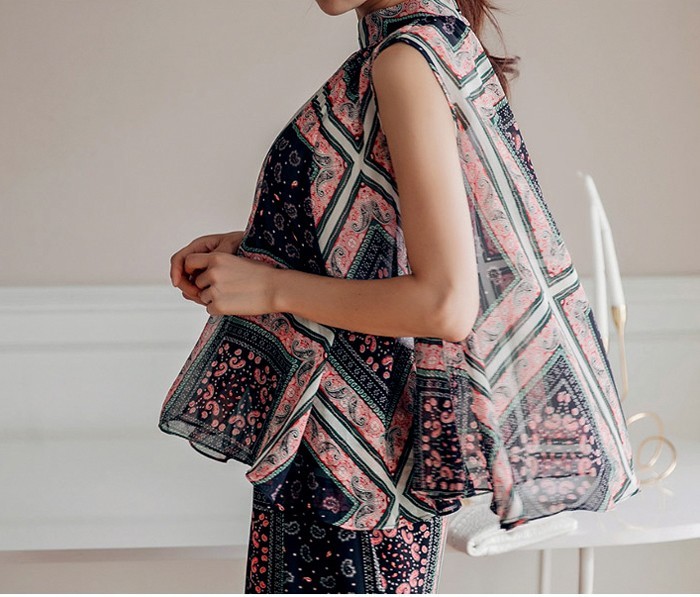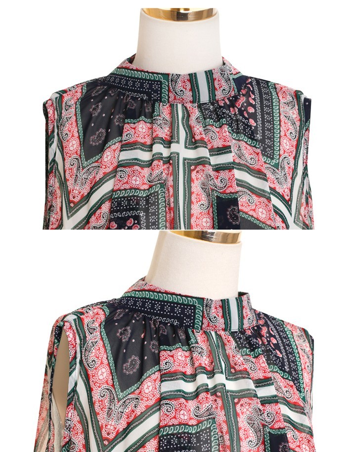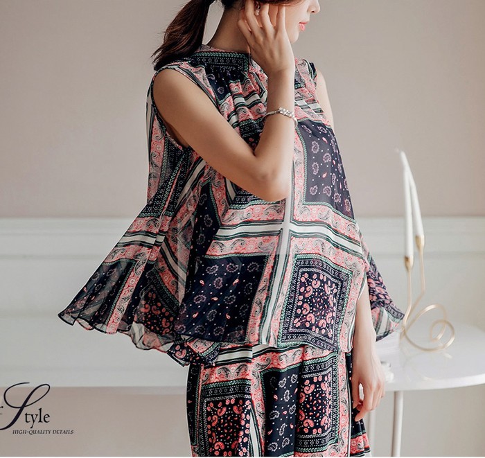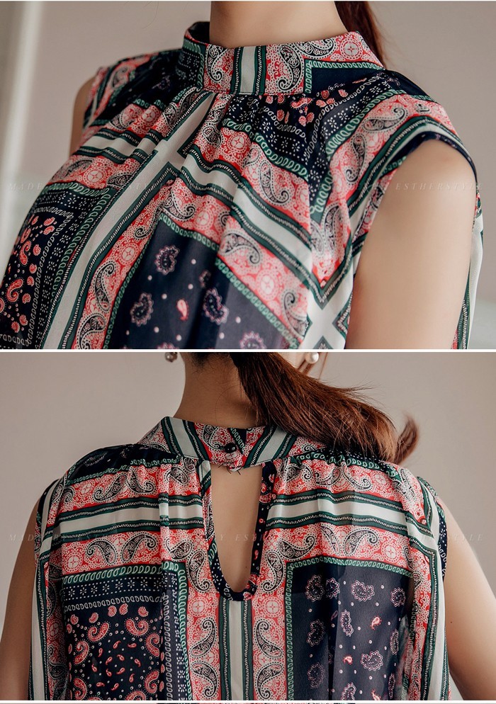 商品名:ブラウス プルオーバー 柄 ペイズリー ノースリーブ