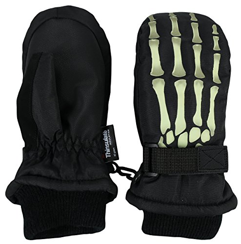 N'Ice Caps Kids Glow in the Dark Skeleton Print Thinsulate Waterproof Mittens