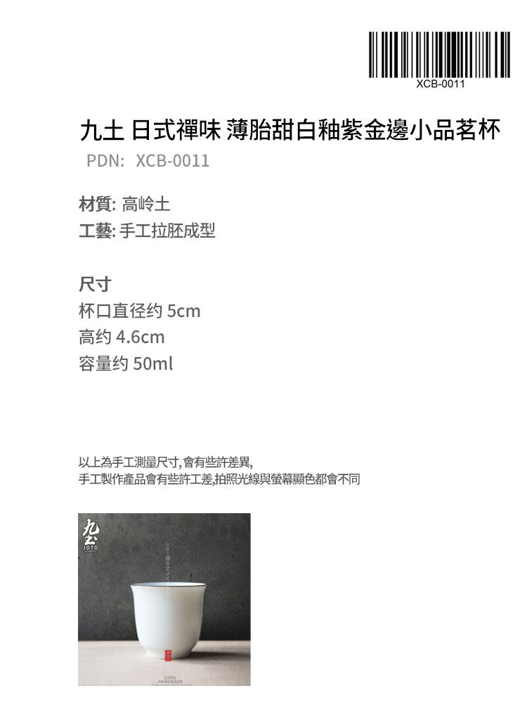 紫金口品茗杯功夫茶具薄胎瓷小茶杯 日式禪意功夫茶道陶瓷杯