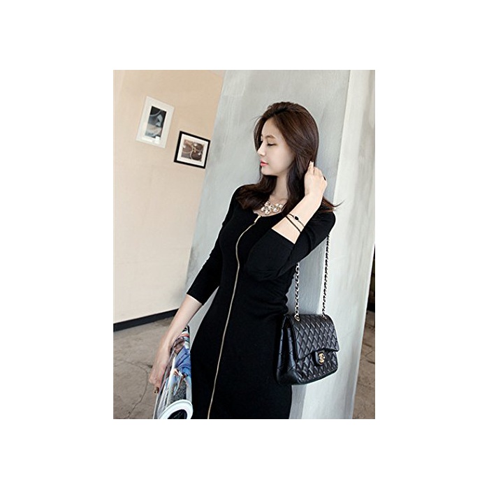 Petit etc Francais Petit etc Francais 레이디스 긴 소매 원피스 타이트 미니 ZIP 업 블랙 (03 L)