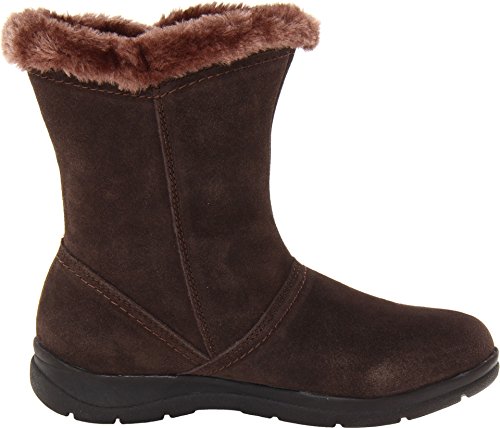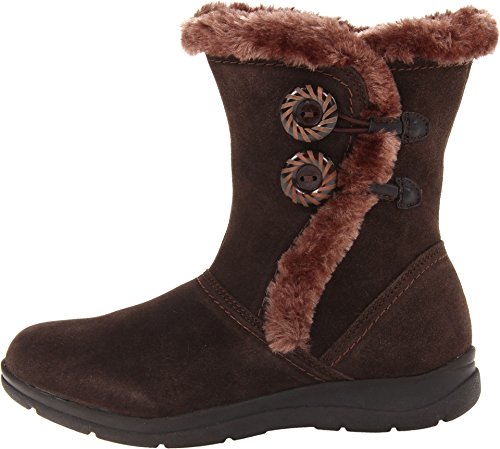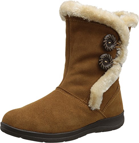 White mountain trip suede bootie is fur lined for warmth and comfort. The flexible treaded bottom will give you traction. Toggle button closure adds accent and makes it easier to get on and off.Feature