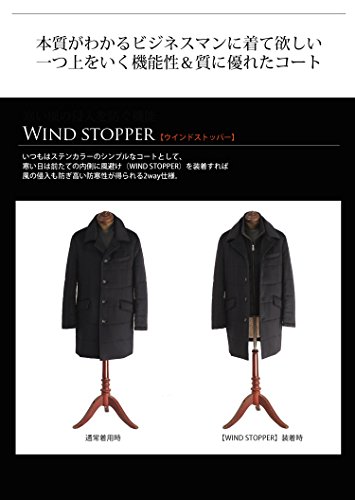 -. Feature : 本質がわかるビジネスマンに着て欲しい一つ上をいくカシミヤ100%コート 暖かく厚みのあるカシミヤ100%の生地を使用。 表面にはキルティング加工が施され、 デザイン性、保温性に優れたコートです。 ステンカラーのシンプルなデザインで前立てに風避けのWIND STOPPERを装着すれば 風の侵入を防いでくれます。 / (No. 02000041 r ) / ■サイズ 【M】着丈85cm、胸周り104cm、肩幅45cm、袖丈61cm 【L】着丈87cm、胸周り108cm、肩幅46cm、袖丈62cm 【XL】着丈89cm、胸周り112cm、肩幅47cm、袖丈63cm 【素材】 表地:カシミヤ100% 裏地:ポリエステル100% 中綿:ポリエステル100% ラム革(外衿裏)、ウール100%(内衿) 【留具】 本体:丸ボタン(水牛)×5 WIND STOPPER:ファスナー 【モデル】身長180cm(着用サイズL) 【備考】 ・WIND STOPPERは3箇所のファスナーで取り外しができます。 ・カシミヤの生地の表面はキルティング加工が施されています。 / 【M】着丈85cm、胸周り104cm、肩幅45cm、袖丈61cm