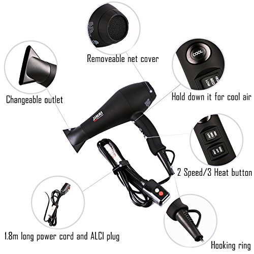 JINRI Hair Dryers 1875W Hairdryer Professional Negative Ions Hair Blow Dryer Far Infrared Heat 2 Speed and 3 Heat Portable Blowdryers AC Moto Hanging Ring...
