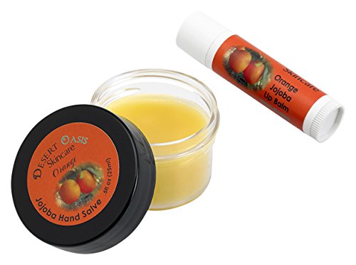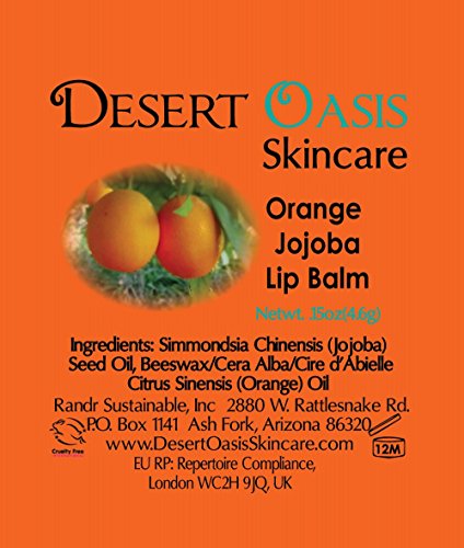 Desert Oasis Skincare, Orange Lip Balm made with over 70% jojoba oil and travel size (0.5 oz) Orange salve made with over 50% jojoba oil