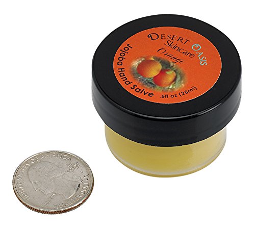 2 pack (one lip balm, one hand salve travel size (0.5 oz)), Our All Natural Orange Jojoba Hand Salve is made from Jojoba Oil, Avocado Oil, Beeswax, and real Orange zest. Our Salves contain no chemicals, no preservatives, and no added colors. We make them from all natural ingredients. Instead of using essential oils, we infuse the Jojoba Oil with real Orange zest. The Salve is 0.5 ounces net wt. (14 gm) the lip balm is .15 ounces. Our Salves are for both men and women. This is the same as our larger 2 ounce Salve, but in a smaller size that is perfect for travel or to carry with you every day. Due to the fact that our Salves are mainly Jojoba Oil you don't need very much in each application. It quickly absorbs into the skin, leaving your skin wonderfully soft. If you have never tried Jojoba Oil based products you should really give this a try, it is special. Use our Salves at night and after a shower or bath to help soften rough skin. They work well on hands, elbows, and feet that are dry and starting to crack. Our Salves are even mild enough to use on your face before bed or after shaving. County of Origin: USAFeature