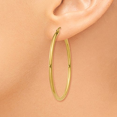 SPECIFICATIONS: Jewelry Type: Earrings, Earring Type: Hoop, Material: Primary: Gold, Material: Primary - Color: Yellow, Material: Primary - Purity: 14K, Length of Item: 40mm, Thickness: 2mm, Sold By Unit: Pair, Earring Closure: Wire & Clutch